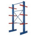 Our industrial grade I Beam Cantilever rack has the strength and versatility to store and organize all of your warehouse needs. All Double-Side and Single-Side Racks come with 24" inclined arms adjustable on 4" centers. Each arm has a 3,800 pound capacity. Each I-Beam Canitlever Rack is welded on 32" bases and have 72" center-to-center horizontal spacing. All I-Beam Canitlever Racks come in an attractive blue color with orange arms.