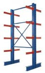 Our industrial grade I Beam Cantilever rack has the strength and versatility to store and organize all of your warehouse needs. All Double-Side and Single-Side Racks come with 24" inclined arms adjustable on 4" centers. Each arm has a 3,800 pound capacity. Each I-Beam Cantilever Rack is welded on 32" bases and have 72" center-to-center horizontal spacing. All I-Beam Cantilever Racks come in an attractive blue color with orange arms.