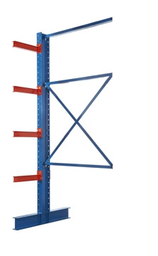 Our industrial grade I Beam Cantilever rack has the strength and versatility to store and organize all of your warehouse needs. All Double-Side and Single-Side Racks come with 24" inclined arms adjustable on 4" centers. Each arm has a 3,800 pound capacity. Each I-Beam Canitlever Rack is welded on 32" bases and have 72" center-to-center horizontal spacing. All I-Beam Canitlever Racks come in an attractive blue color with orange arms.