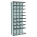 Our Metal Bin Shelving Unit has a fully enclosed design that consist of 36 bins that are (32) 9"W x 9"H and (4) 9"W x 12"H. These rugged units are designed for high-density applications. Our sturdy Bin Shelving units are designed for strength, versatility and the efficient storage of large or small parts and packaged goods. This enables quick, easy access to stored materials, saving time in locating and picking stock. Locate, organize, and retrieve parts and products in several applications with ease.