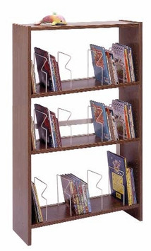 Our single sided picture book shelving is great for organizing oversized books. Each shelving unit includes four black powder coated wire dividers per shelf. Dividers are adjustable on 2-1/2" increments. The 12" deep shelves adjust in 1-3/4" increments.