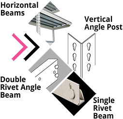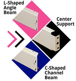 Not seeing the exact size or setup that you want? Not a problem! Creating your own custom boltless shelving unit is easy! Instead of buying your shelving by unit, you can get individual parts for a shelving set as unique as your needs are. Each row will need four vertical angle posts for the corners, two tee posts to for each unit you want to connect together, and two left-to-right length angle beams and two front-to-back length angle beams per unit for the bottom. Then each individual shelf will need two front-to-back length angle beams and two left-to-right length horizontal beams, which can be single rivet angle beams, double rivet angle beams, double rivet channel beams, or even tire rack beams. This is where you can really make your units your own, selecting the heavy duty versions of either the single rivet or double rivet angle beams, which are made from a heavier gauge steel to increase shelf capacity. You can also add front-to-back length center supports to any of any of the shelves with double rivet beams for even greater shelf capacity.