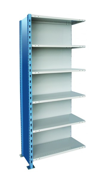 - Shelving: 6 shelves (including top and bottom) that can be installed with beaded front and back angle posts, T-posts and H-posts using 4 shelf clips each.