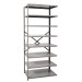 - Shelving: 8 shelves (including top and bottom) that can be installed with beaded front and back angle posts, T-posts and H-posts using 4 shelf clips each.