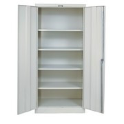 Steel storage cabinets offer maximum protection to tools, delicate instruments, supplies and personal belongings. Functional, durable and adaptable, this cabinet is designed to meet even government requirements. Neat and attractive in finish, this storage cabinet is fabricated from heavy gauge steel, and all metal parts are precision engineered. Featuring easy to open 3-point latching and cabinet doors that open a full 180 degrees for full access of contents, these cabinets are an ideal solution to storage needs in offices, plants, schools and laboratories.